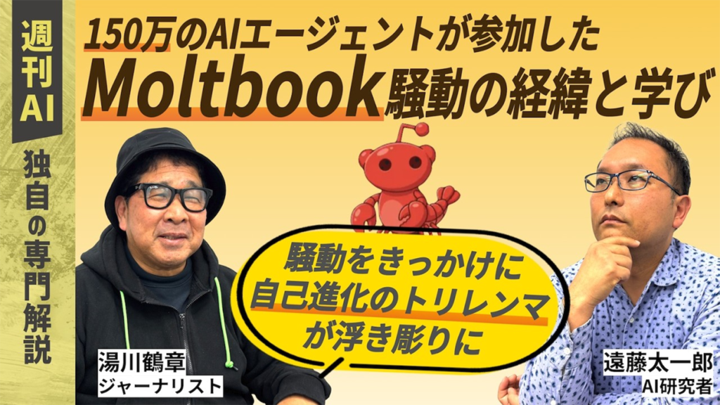 【週刊AI】150万のAIエージェントが参加したMoltBookの経緯と、人間が関与しない閉鎖環境下でのAIの安全性/セキュリティ問題への学びを考える