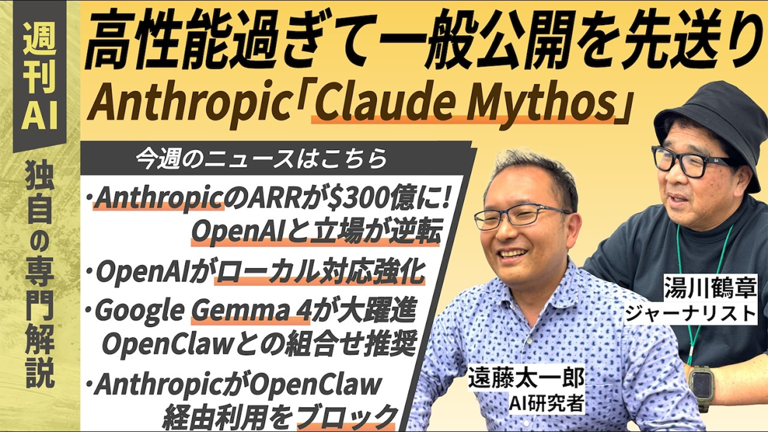 2026年4月11日に、以下の目次で「ほぼ週刊、AI動向のイマとミライ」動画を配信しました。