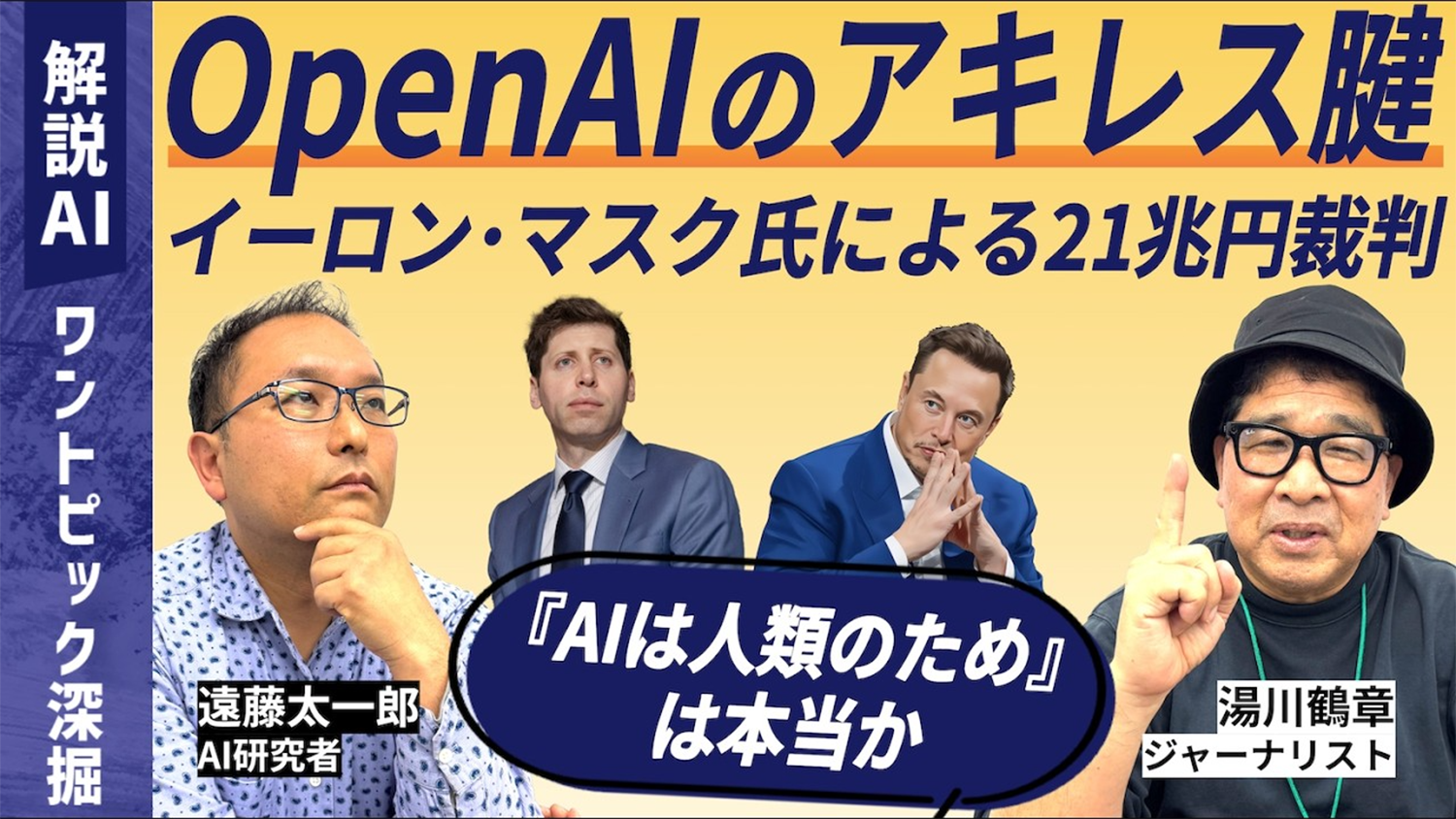 0:46 イーロン・マスク氏がOpenAIを提訴、4月27日開廷